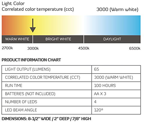 - 100時間の実行時間 – 他のLEDライトより4倍長持ち。動作のために、3 AAバッテリー(商品には含まれません