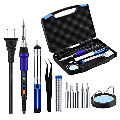 Longtop はんだごて セット デジタル表示 デジタルはんだごて 精密 電子作業 電気DIY用 温度制御 温度調節(90~480℃)5個交換コテ先付き 100V 25W 多用途