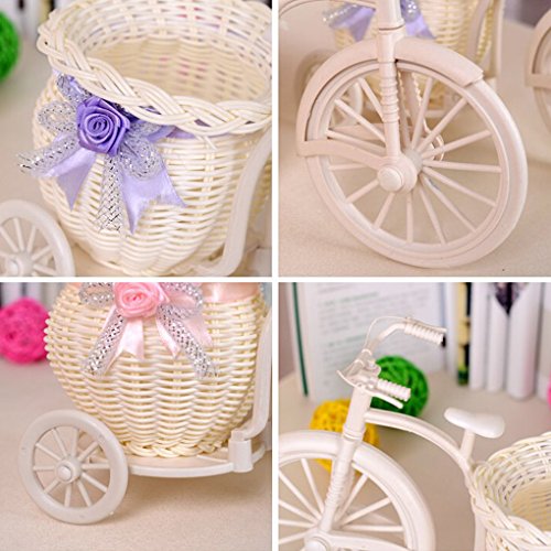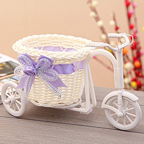 LORIA・JP 手編み三輪車形の花かご フラワーバスケットウィッカー 花瓶 飾り ギフト用 装飾用品 浅紫