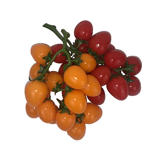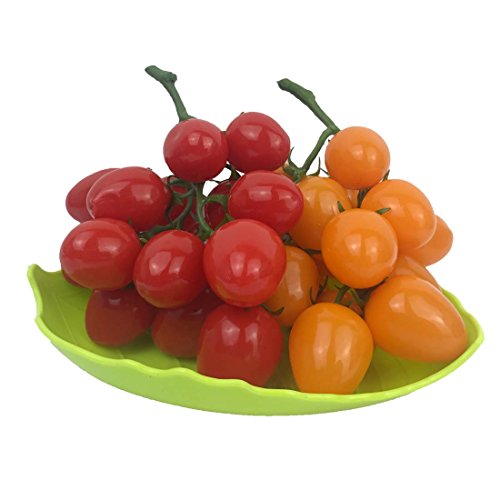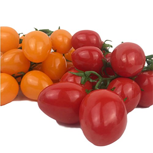 人工チェリートマトFakeフルーツオーナメントカラフルなトマトVineホームキッチン装飾2 Bunches (レッド+イエロー)