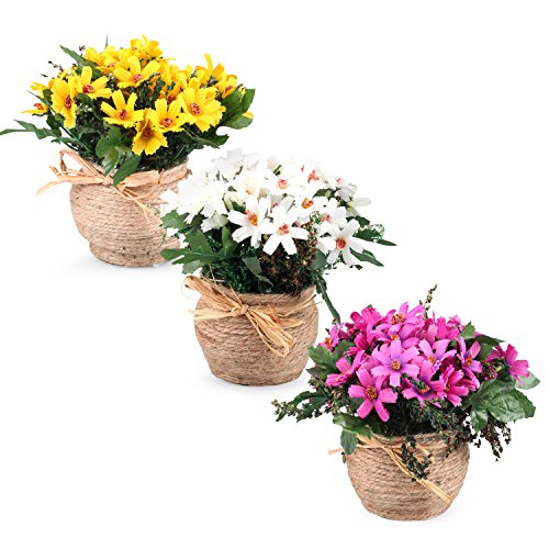 - 麻縄バブル花器を編んだ+绢布制雛菊+干し草