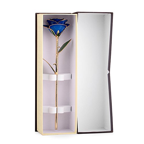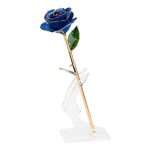 Louis Garden 24Kゴールドバラ+ギフトボックス+ギフトバッグ+アートスタンド (Blue)