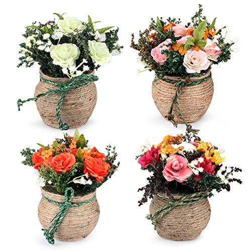 Louis Garden 麻縄小さなローズ 干し草造花 (オレンジ)