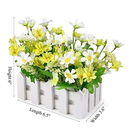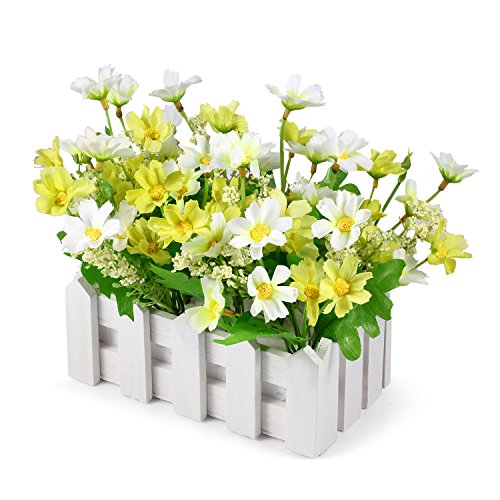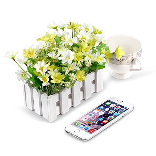 Louis Garden 人工花フェイクデイジーウッドフェンス 花の装飾 –ミニ鉢植え植物 (グリーン )