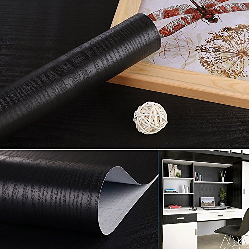 LoveFaye 黒い 壁紙 はがせる 北欧 木目調ブルー DIY防水 45cmx3m かんたん貼付シールタイプ M489