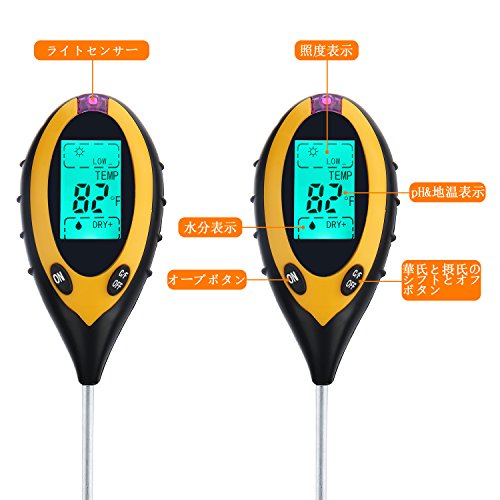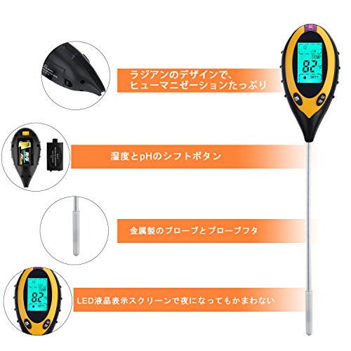 - 「多機能」陽当り、水分、土壌の酸性度と温度を正確的に測定できる4 in 1多機能の土壌測定計で、植物に適応的な環境を創造します。
