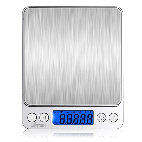 キッチンスケール Lovten 電子秤 デジタルスケール 皿はかり クッキングスケール 精密 計量秤 超小型 研究用 キッチン用 料理用スケール 液晶ディスプレイ 0.1 g単位/3000gまで 風袋機能 オートオフ機能