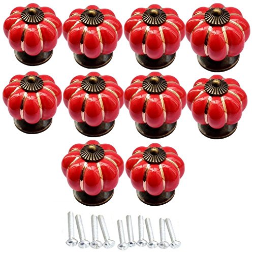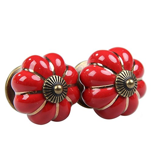 lsgoodcare 12個40 mmキッチンPumpkinsハンドルプル引き出しノブ亜鉛セラミックドアキャビネット食器棚ハードウェア レッド COMINHKPR117185