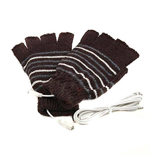 lsgoodcare USB 2.0ストライプパターン指なし暖房ニットウール手暖かい手袋手袋