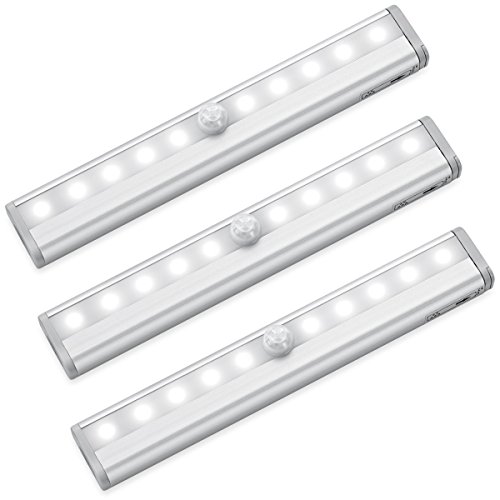 Lucktao センサーライト 人感センサー LEDライト マグネット付き 自動点灯消灯 電池式 ワードローブライト 10 LED ワイヤレス 貼り付け型 防犯 風呂場 廊下 階段 光センサー LEDナイトライト 昼光色 3本セット