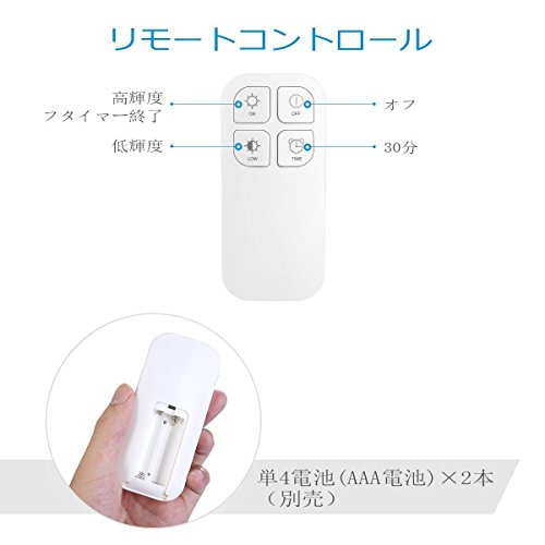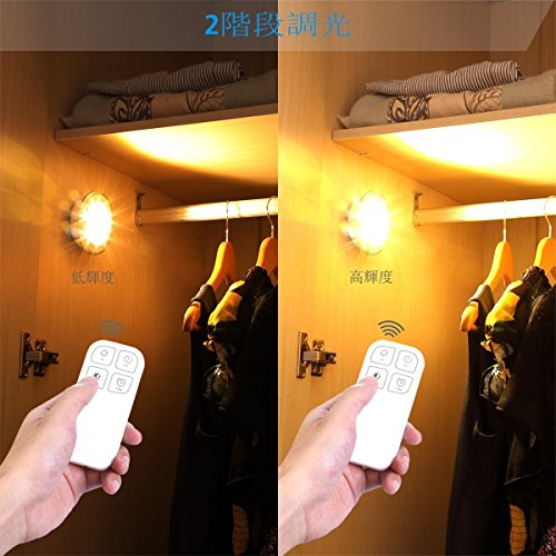 - 【明るさが2階段調光可能】リモートコントロールで好きな明るさが調節可能です。【操作簡単】小型リモコンに4つの大きなボタンがあります。ON / OFF / LOW / TIME。リモコンの効果的な受信範囲は10メートルです。1つのリモコンは同時に複数のライトを制御することができます。360度角度をコントロールライトられます。ご注意:壁などの障害物が多くと受信効果に影響があります。