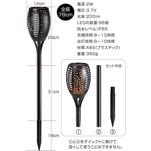 - 【雰囲気抜群】ゆらゆらと揺れる光。ニオイも煙も気にならず、熱くなることもありません。火は一切使っていませんが、本物の炎のようにゆらゆらと揺らめいてる最新のLEDソーラーライトです!お部屋のインテリアにはもちろん配線不要なのでどこでも設置可能♪