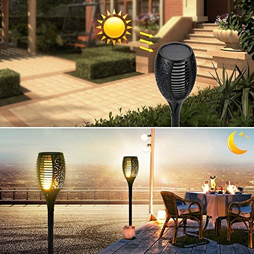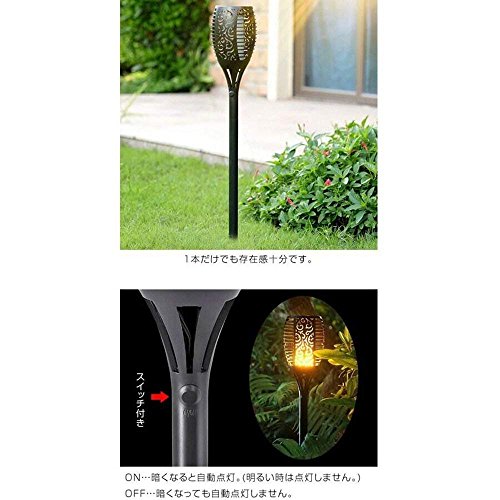 Lucktao 96LEDガーデンライト 炎のライト ソーラーライト 松明 明暗センサー搭載 防水仕様 スポットライト フレームライト 揺れる炎 自動点灯消灯 (1pcs, 96LEDガーデンライト)