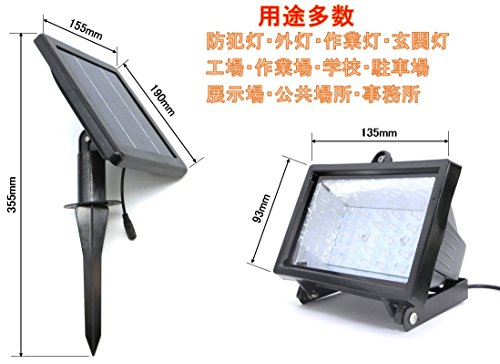 - セット内容:投光器本体、ソーラーパネル、約5m接続コード、ソーラー用スタンドスティック付き
