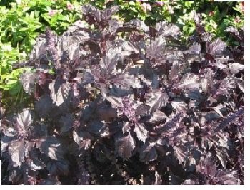 - 葉は深い赤紫色でフリルがありダークオパールバジルより大きめです。バジルと同様に利用できます。大型のウェーブの縮れ葉で、香りはひかえめ。葉を酢に漬けるときれいなピンク色になるらしい。草丈50cm。