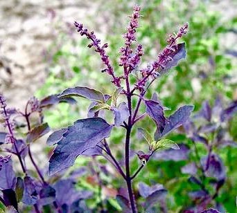 - ( クリシュナトゥルシーの種)古くからインドで愛用されたハーブです。「万能のハーブ」と呼ばれます。葉、花とも赤紫がかります。ホーリーバジルの中でも一番効果が高いとされます。強い香りするバジルです。体にいいハープです。綺麗な花が咲きます。