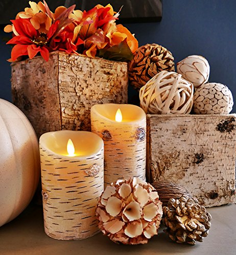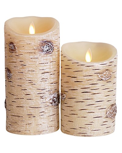 セットの2 Luminara Birch Barkフレイムレスキャンドル: 3.5 " x5 " 3.5 " x7 "無香Moving Flame Candle withタイマーリモート、電池、