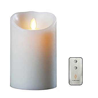 Luminaraリモート含まFlameless Moving Wick Wax Candle 3.5?by 7インチアイボリーwithタイマー