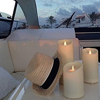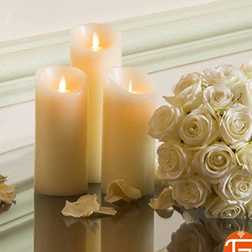 Luminaraリモート含まFlameless Moving Wick Wax Candle 3.5 by 7インチアイボリーwithタイマー