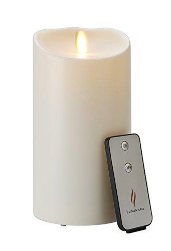 LuminaraフレイムレスキャンドルReal Flame効果Candle LuminaraアウトドアPillar Candle withタイマーとリモート(3.75 X 7-inch、アイボリー)