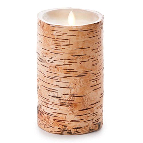 Luminaraバーチ木製Flameless Pillar Candle 4 " x 7 " in。|埋め込み& Wrapped w/Real Birch Wood Bark
