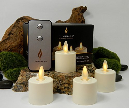 Luminaraティーライト電池式フレイムレスキャンドルアイボリー4pcセット1.44 " X 1.25 " auto-timer |ボーナスリモートコントロール含ま