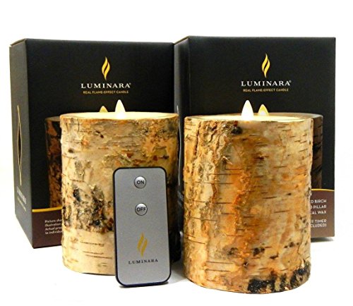 Luminara Birch Bark Flameless Candle 5 "インチピラーアイボリーワックス: 2ピースセットW/リモート制御 – 4 " x 5インチ、電池式、タイマー| Realバーチ木製 – Notペイント|ホーム、ベッド& Bath、ナチュラル、ウェディングギフト