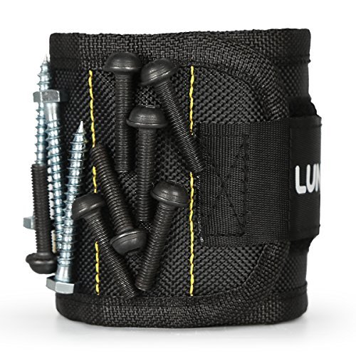 lunvon磁気リストバンドwith 15pcs強力な磁石Holdingネジ、釘、のドリルビット – Best一意のツールギフトDIY Handyman、父/ Dad、夫、ボーイフレンド、メンズ、レディース(ブラック)