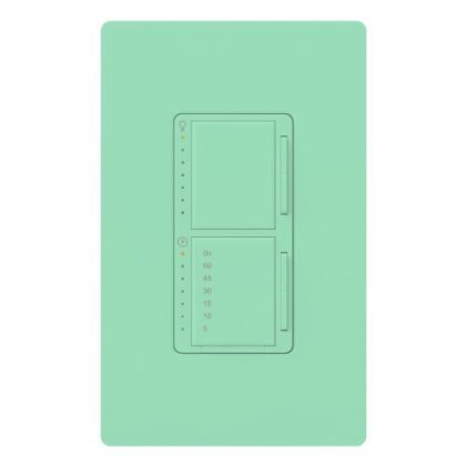 Lutron MA-L3T251 Maestro Dimmer/Countdown Timer Switch (Two Loads) Single Pole 300 W Light (Top) (Incandescent/Halogen) 2.5 A Timer Switch (Bottom) Lighting Load and/or General Purpose Fan(s) (Single Location Only) True Multi-Location Dimming From Each Location Tap On to Favorite Level; Tap Off; Tap Twice for Full On Touch Rocker to Adjust Light Level LEDs Indicate Light Level and Glow Softly in the Dark as a Locator Light Delayed Off Provides Light as You Exit the Room Line Frequency Compensation Maintains Stable Light Coordinating Claro and Satin Colors Wallplates Available Separately (Including Stainless Steel) Programming Allows Customized Functions Eco-Dim Model Available Clamshell Package Dimmer (Top) Tap On to Favorite Light Level; Tap Off Tap Twice for Full On Touch Rocker to Adjust Light Level Clamshell Package Timer Switch (Bottom) Tap On to Start Timer; Tap Off Tap Twice for Untimed On Touch Rocker to Adjust Countdown Time One Minute Warning Before Fan or Lights Go Off Top LED is Full On with No Timer Action W: 2.94' (75mm) H: 4.69' (119mm) D: 0.30' (7.6mm) 300 W Light (Top) (Incandescent/Halogen) 2.5 A Timer Switch (Bottom) Lighting Load and/or General Purpose Fan(S) (Single Location Only) 120V 60 Hz Minimum Load is 40 W/VA Clamshell Package Wall Plate Not included Incandescent, Halogen Finish: Sea Glass Type: Satin Single Pole Tap, Rocker/Paddle LED Light Included Wired 1 Gang