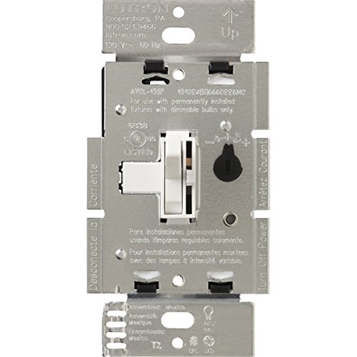 Coordinating wall plate sold separately. The Ariadne/Toggle 250 Watt C.L Dimmer features advanced dimming circuitry that is designed for compatibility with most high efficacy light bulbs. Screw-in dimmable light emitting diode lamps (LEDs) and screw-in dimmable compact fluorescent lamps (CFLs) are a great energy-saving alternative to incandescent or halogen light sources; however, your standard dimmer will not dim these light sources. The Ariadne C.L works with dimmable LED and CFL screw-in bulbs up to 250 Watts and is also compatible with up to 600 Watts of standard incandescent and halogen bulbs, allowing you to control all 4 bulb types on the same circuit. It is designed to control a broad range of dimmable LED and CFL bulbs from a variety of brands including Philips, Cree, GE, Eco Smart and Lighting Science. The Ariadne/Toggle C.L matches your existing toggle switches. It features a slider to adjust your light to any activity and the toggle switch turns your lights off or on---returning the lights to your favorite level. Please see the Lurton Compatible Bulb List under Technical Specification to view the current listing of compatible bulbs that work with this dimmer. Coordinating Facade wall plate sold separately.