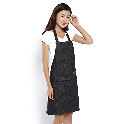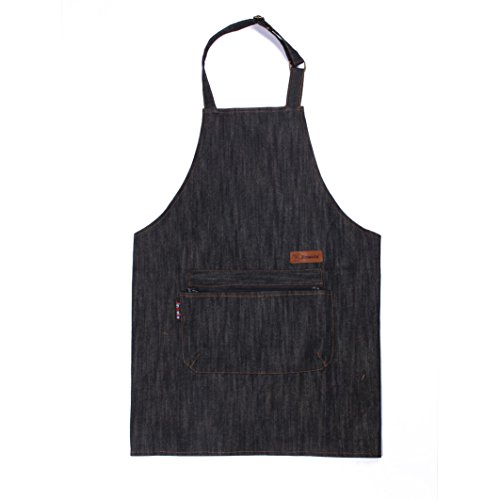 - <多機能ポケット付ショート丈> 丈夫なデニム生地に、大きなポケットが1つ、ジッパーポケットが1つ付いているので、スマホやメモ帳、小物を入れておくのに機能的で便利なワークエプロンです。ショート丈なので動きやすく、首かけタイプなので着脱が簡単です。
