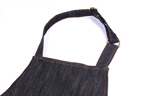 【 Lux Esto 】ワークエプロン 首かけ タイプ 無地 デニム エプロン メンズ レディース 男女兼用 多機能 ポケット ( DIY 保育士 料理 カフェ お店 ユニフォーム などに )