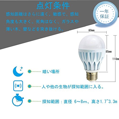 Luxon LED電球 人感センサー 搭載レーダー探知機付 E26口金(5W) 40w形相当 自動点灯 電球色