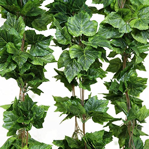 Luyue 観葉植物 造花、藤 人工壁掛け、ブドウの葉 人工 藤、緑 壁掛 グリーン 緑 植物 吊り 家庭やパーティ飾り、6 個セット