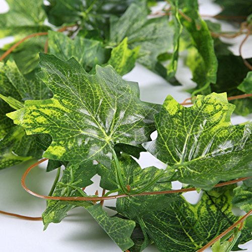 Luyue 【 観葉植物 アイビー 5本 】 壁掛け インテリア アンティーク 雑貨 造花 人工 フェイク 壁掛 グリーン 緑 植物 吊り 家庭やパーティ飾り (5本) (緑の楓の葉)