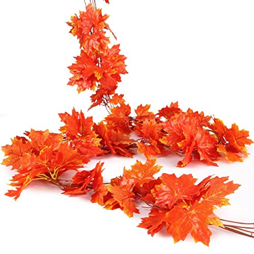 Luyue 【 観葉植物 アイビー 5本 】 壁掛け インテリア アンティーク 雑貨 造花 人工 フェイク 壁掛 グリーン 緑 植物 吊り 家庭やパーティ飾り (5本) (赤い楓の葉)