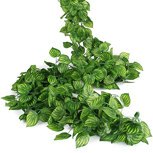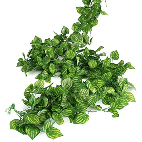 Luyue 【 観葉植物 アイビー 5本 】 壁掛け インテリア アンティーク 雑貨 造花 人工 フェイク 壁掛 グリーン 緑 植物 吊り 家庭やパーティ飾り (5本) (スイカの葉)