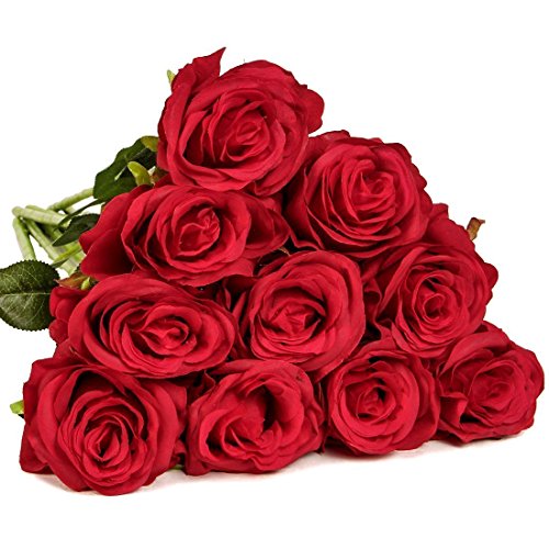 Luyue【 バラ 造花 10本 セット 】 薔薇 花束 結婚式 パーティーグッズ イベント 誕生日 プレゼント ギフト 贈り物