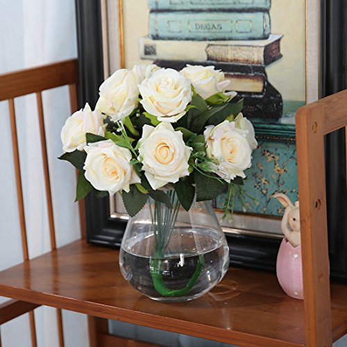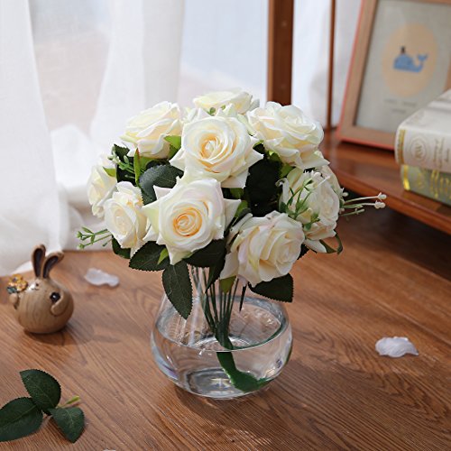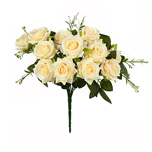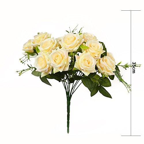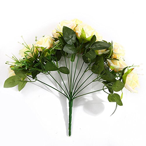 Luyue 造花 ローズバンチ 12花の頭 手作り 薔薇花束 ブーケ インテリア フラワーアレンジ 結婚式 お祝い 飾り ギフトなどにお勧め (淡黄色)