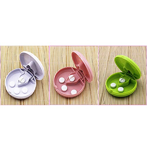 メディカルスプリッタドーズピルカッタータブレットポータブルラウンドプラスチック分割スプリッタカットピルストレージボックスの安全シールド(ピンク)