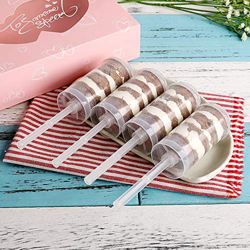 2PCS丸型クリアプッシュアップケーキポップシューター、蓋付きプラスチック容器、ベース&スティック、トリートスタンド、ケーキスタンド