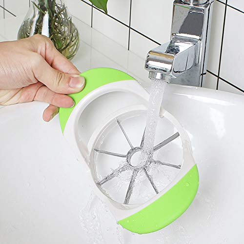 便利なガジェットは、リンゴやナシを8つのきれいなウェッジにスライスするだけでなく、果物を1つの高速モーションでポップします。ケーキの上に置かれた蓋を振ってウェッジを押し出します。ウェッジとコアの両方がきれいに出てきます。スライスを解放するのに加えて、カバーは保管中にブレードを保護し、保持します耐久性のあるABS、ステンレススチール、ポリプロピレンでできていますので、食器洗い機に入れて安全に使用できます。