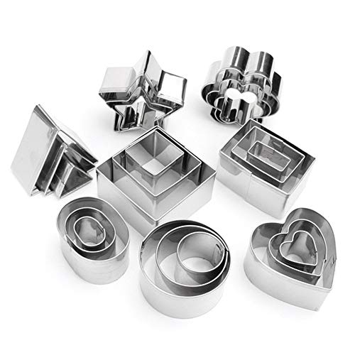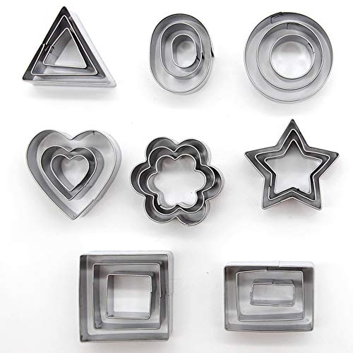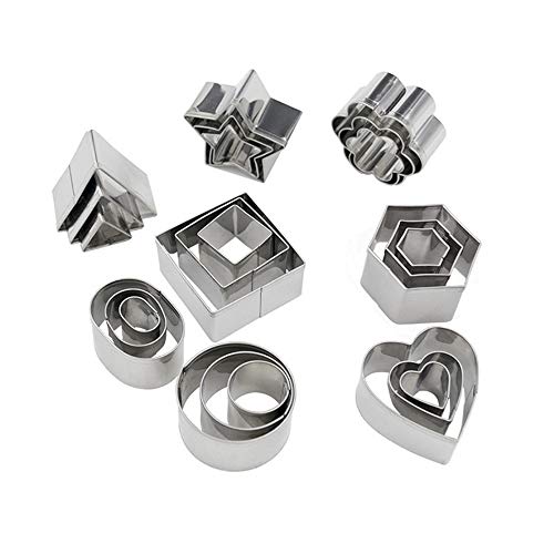 ミニ幾何学形状のクッキービスケットカッターセット24六角スクエアハートトライアングルラウンド小さなサークルベーキングステンレス鋼の金属金型