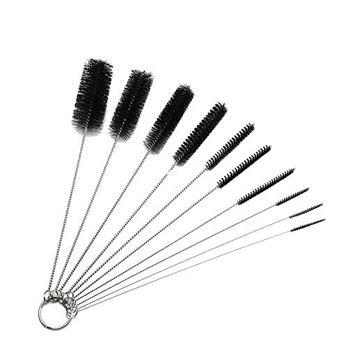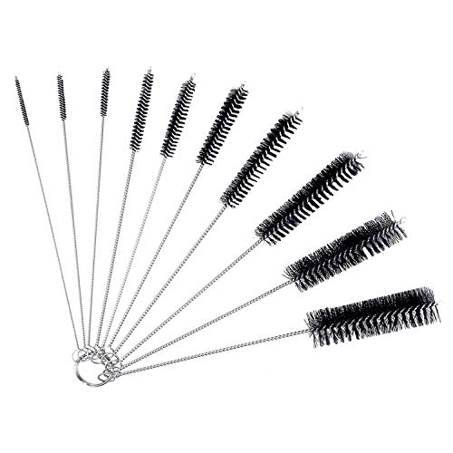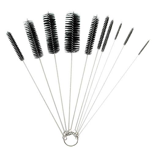 ボトル、チューブ、ジャー、そして最も狭い容器用のナイロンクリーニングブラシセット10個。 (10個)。良いクリーニングシンクツール。