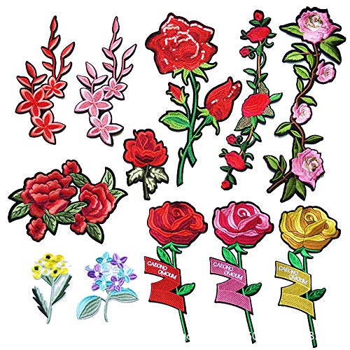 アイアンパッチ刺繍パッチ、15個DIYフラワーローズパッチパッチに刺繍パッチソー服ジャケットのアップリケTシャツジーンズスカートベストスカーフハットバッグ