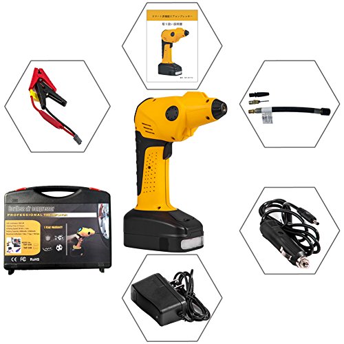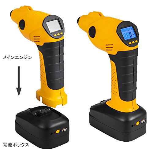 - 大容量2500Am 12v動力リチウム電池搭載されて、使う時電源アダプター(延長コード)を接続するような厄介なプロセスは要らないです。外部電源不要、いつでもタイヤに空気入れることができます。寒い冬と熱い夏にカードアを開ける必要がないです、便利性が抜群です
