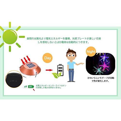 - 【使いやすい】外部からの配線がありませんので電気代が一切かからないのでとても経済的です。それに、色が変わるLED電球がついており、それぞれが次々に色(六つの色)が変化します。 ハンギングフックも付属しております。