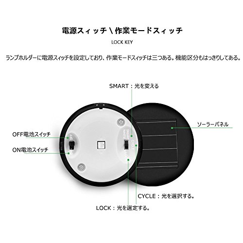- 外灯三用:【差しこみ式】地中に差し込む簡単設置 【スタンド式】コンクリートやお部屋に置いて使うことができます【掛け式】フックが付きので自由にお好みの場所に掛けられます。