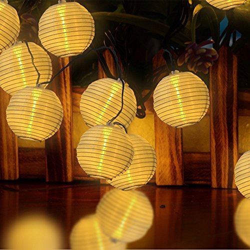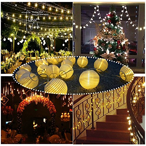 M&T TECH LEDイルミネーションライト ストリングライト ソーラー充電式 光センサー内蔵 防雨防水型 電飾 イルミネーション LED 2点滅モデル クリスマス ライト 飾り付け (20提灯, 電球色)