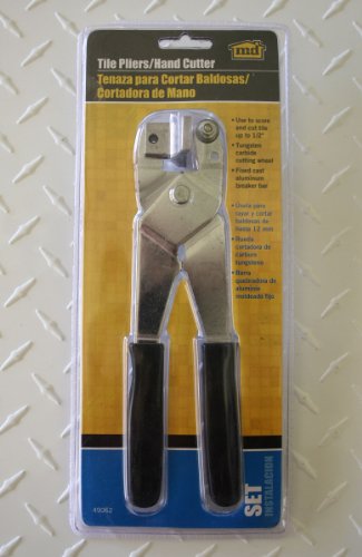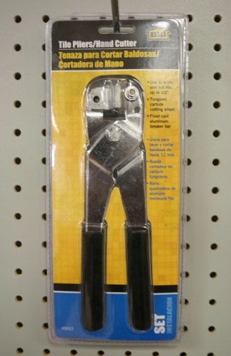 Use to score and cut tile up to 1/2"Tungsten carbide cutting wheelFixed cast aluminum breaker barTile Pliers/ Hand Cutter are designed with the same purpose as tile cutters. Cuts and snaps wall tile and thin floor tiles. Includes a tungsten carbide wheel and drop forged handles.Cuts, scores and snaps wall tile and thin floor tile up to 1/2". Drop Forge handles. Includes: Tungsten Carbide Wheel.Length: 11.38Width: 4.88Height: 1.88